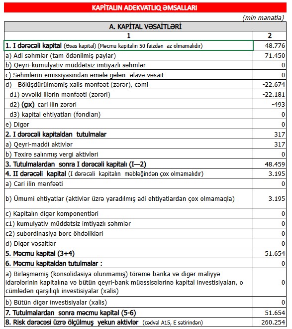 30 sentyabr 2024-cü il tarixində "Bank BTB" 51 milyon 654 min manat məcmu kapitala malik olub, bu da Mərkəzi Bankın minimum tələbindən (50 milyon manat) yüksəkdir. Cari il ərzində "Bank BTB” nizamnamə kapitalını yeni emissiya hesabına 5 milyon manat artırıb.