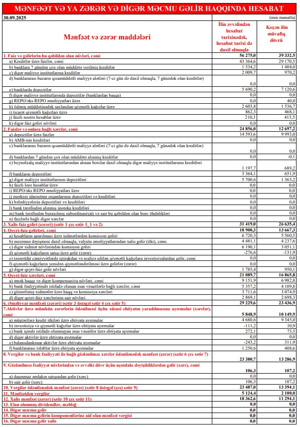 Nəticədə, bankın xalis mənfəəti 11 milyon 294 min manatdan 18 milyon 363 min manata yüksəlib — 7 milyon 69 min manat və ya 62,6% artım olub. Bu, bank üçün güclü rentabellik göstəricilərindən biridir.