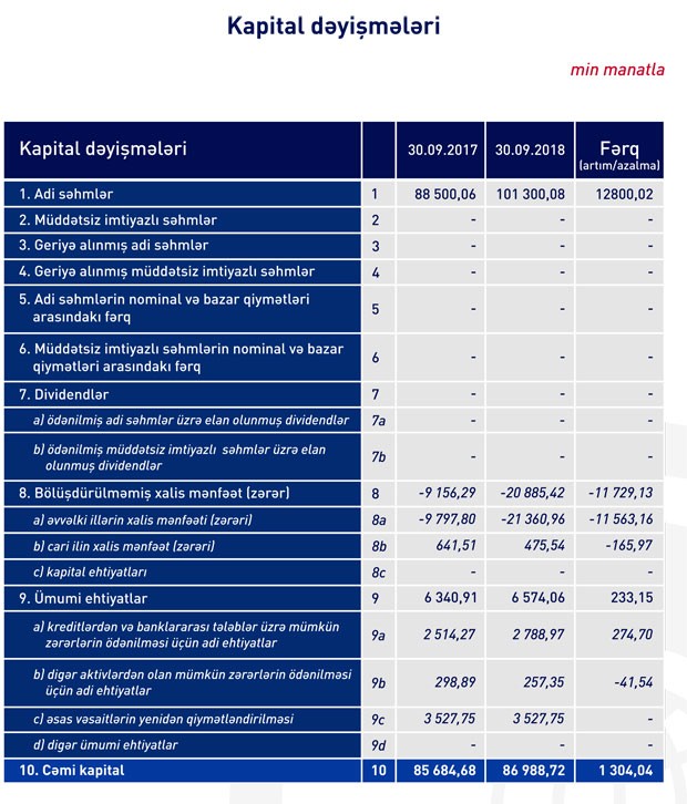 Bankın cəmi aktivləri isə 656 milyon 158 min manatdan 730 milyon 308 min manata qalxıb.
