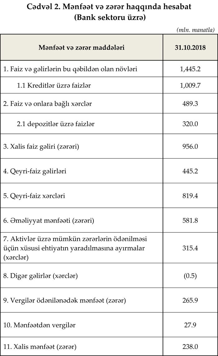 Bank sektoru cari ilin 10 ayı ərzində 581.8 manat manat əməliyyat mənfəəti, 238 milyon manat xalis mənfəət generasiya edib.