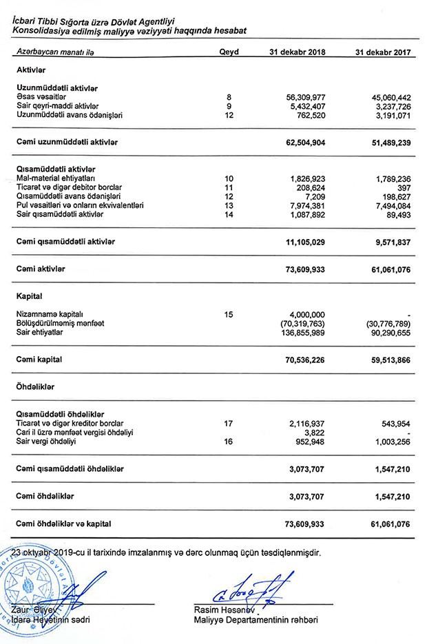 Bu il yanvarın 1-nə İTSDA-nın aktivləri 73 milyon 610 min manat olub ki, bu da illik müqayisədə 20,55% çoxdur. Hesabat dövründə Agentliyin öhdəlikləri 98,7% artaraq 3 milyon 74 min manata, balans kapitalı isə 18,5% artaraq 70 milyon 536 min manata çatıb, o cümlədən 4 milyon manatlıq nizamnamə kapitalı formalaşıb.