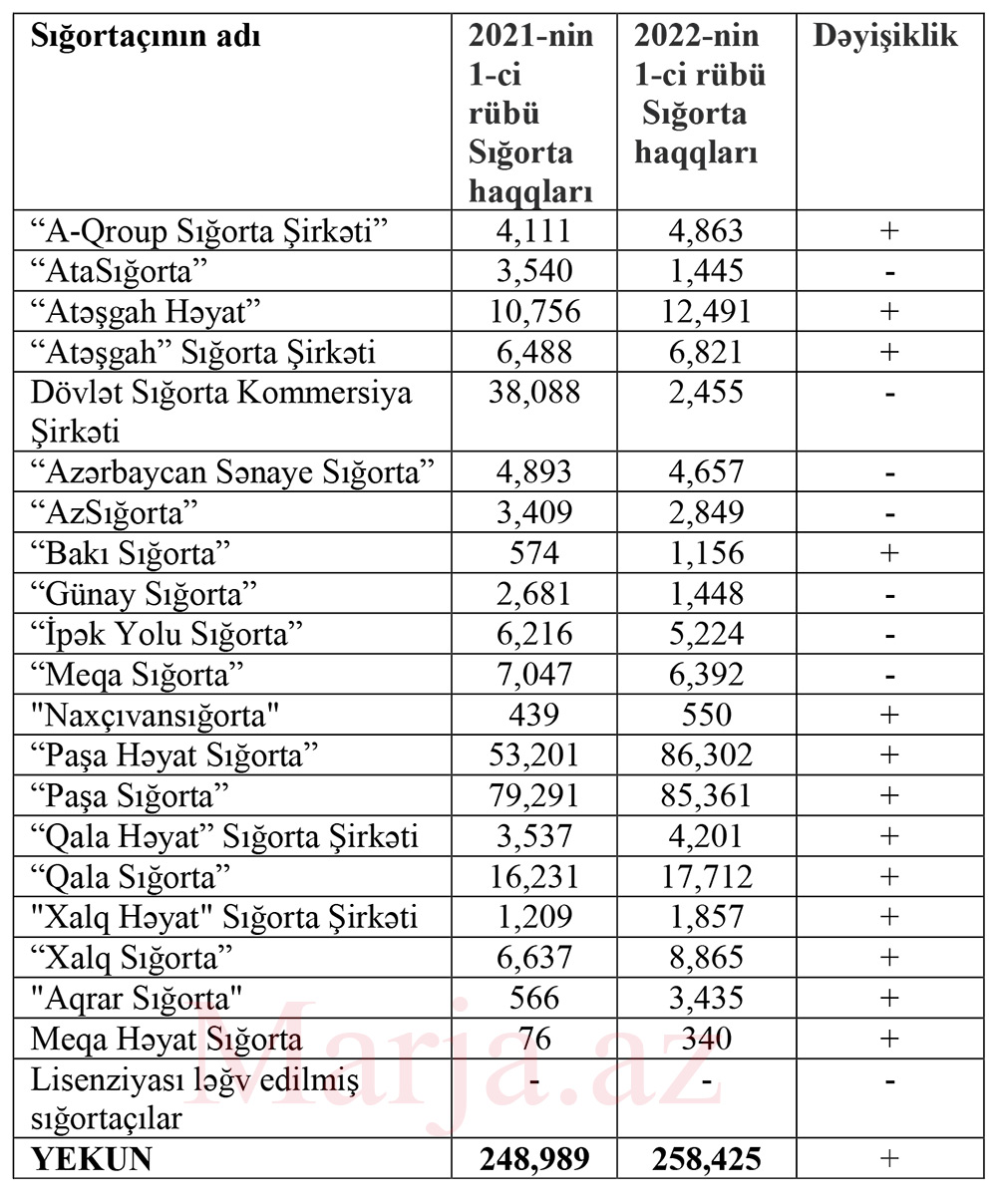 7 sığorta şirkətində geriləmə - SİYAHI