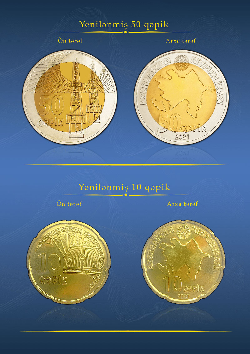 Azərbaycan Respublikasının Mərkəzi Bankı yenilənmiş 10 və 50 qəpiklik metal pul nişanlarının tədavülə buraxılmasını elan edir.