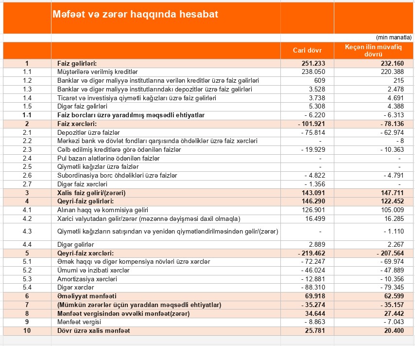 Qeyri-faiz xərcləri isə 219 milyon 462 min manat təşkil edib. 2024-cü ildə qeyri-faiz xərcləri 207 milyon 564 min manat olmuşdu. Bu, 11 milyon 898 min manat və ya 5,7 faiz artım deməkdir.