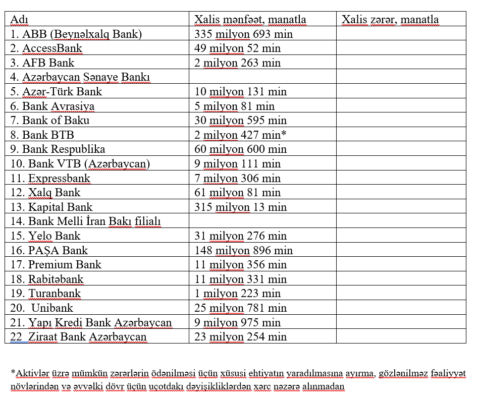 20 bank mənfəət açıqladı - SİYAHI