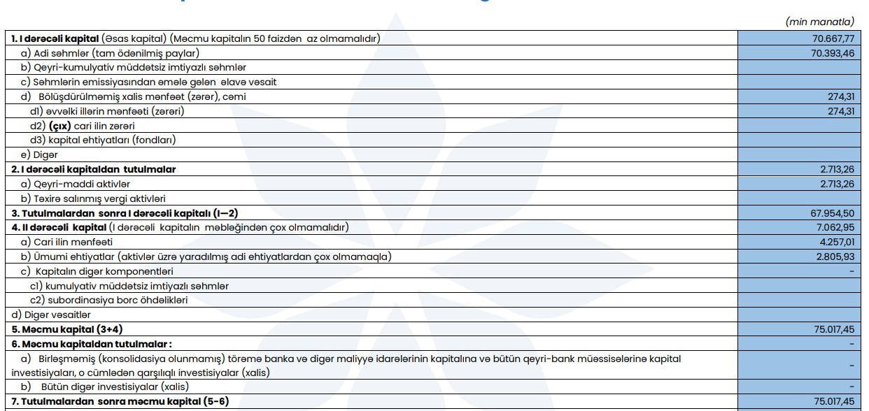 Kapitalın sabit qalması Bankın artan aktivlər fonunda kapital adekvatlığını qorumağa çalışdığını göstərir. Lakin aktivlərin sürətli artımı gələcək dövrlərdə kapitalın gücləndirilməsi ehtiyacını yarada bilər.
