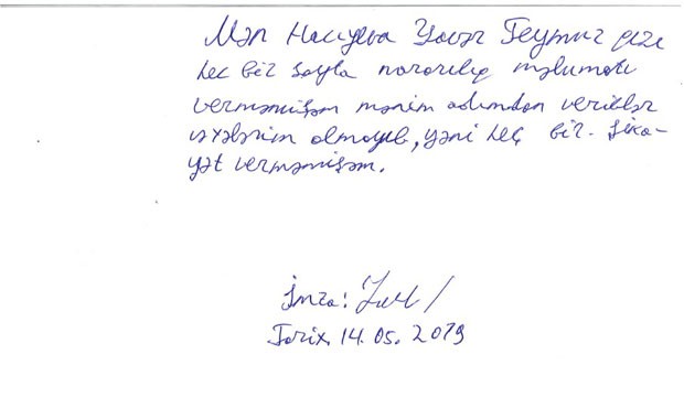 Vətəndaş Hacıyeva Yavər Teymur qızı isə banka müraciət edərək heç bir sayta narazılıq etmədiyini və ümumiyyətlə bu barədə xəbərinin olmamasını bildirib”.