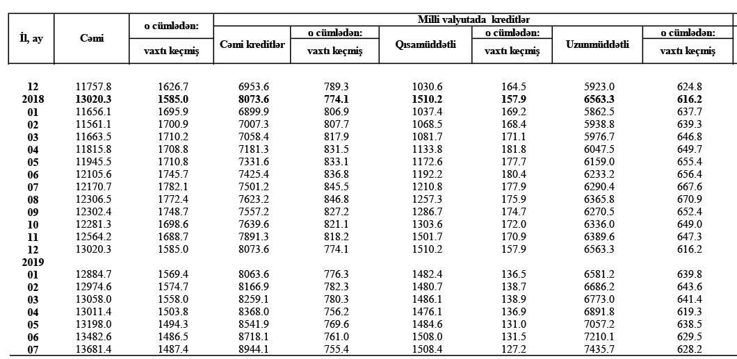 2018-ci ilin sonu ilə müqayisədə cari ilin 7 ayı ərzində Manat kreditləri 870,6 milyon manat artıb, xarici valyutada kreditlər isə 209,4 milyon manat azalıb.