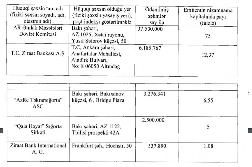 Ötən ilin İyun ayında 928 min manat dividendlərin ödənilməsi barədə qərar qəbul edilmişdi və qərar həmin ilin Avqust ayında icra edilmişdi.