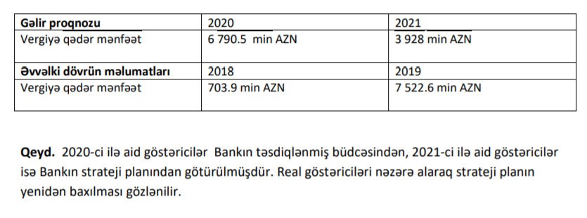 Bank mənfəət proqnozunu açıqladı - 2020-də 6,8 milyon manat gözləyir