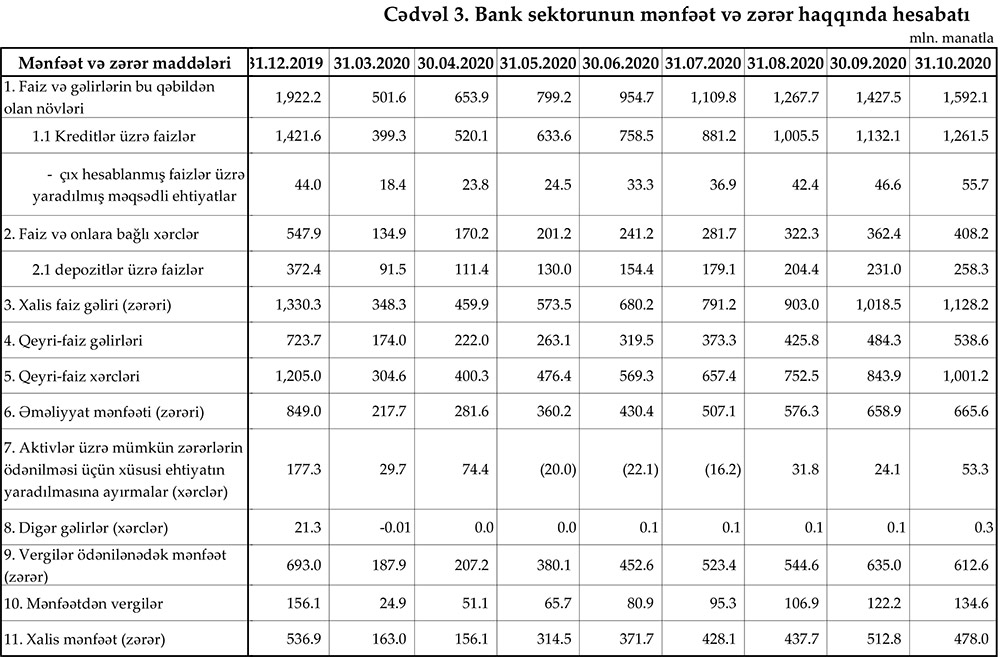30 oktyabr 2020-ci il tarixinə olan bank sektorunun əsas göstəriciləri açıqlanıb.