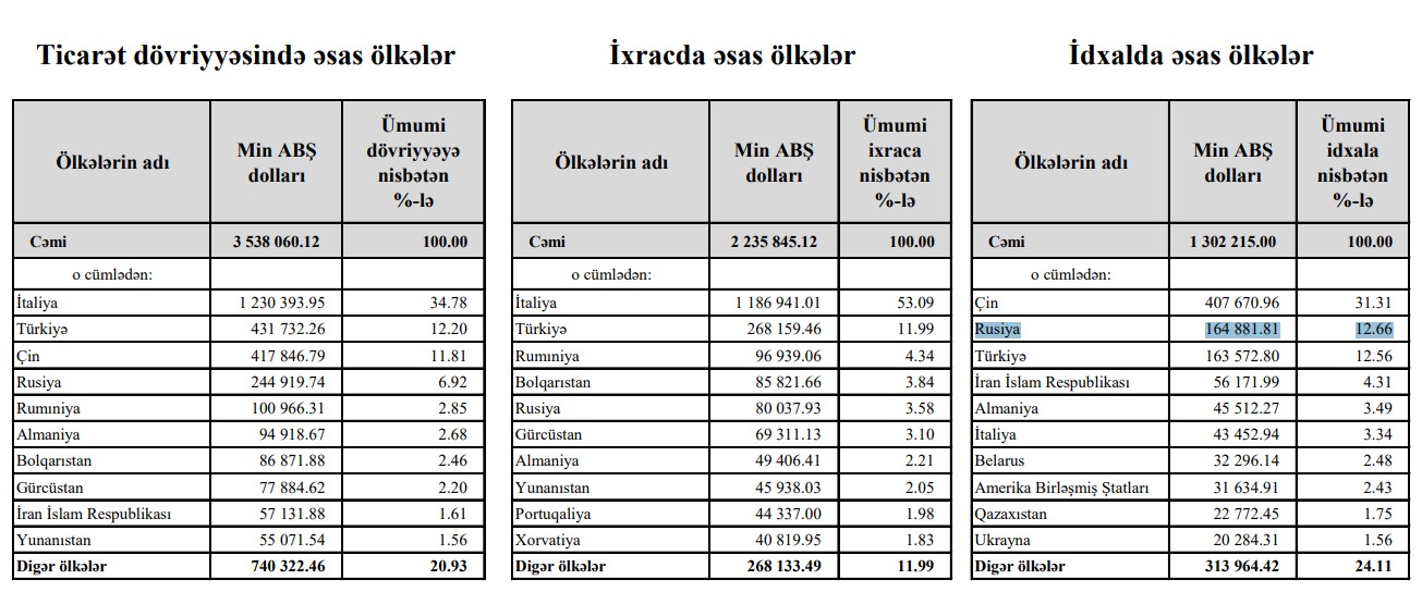 Azərbaycanın Rusiyadan idxalının dəyəri 2 dəfə azalıb
