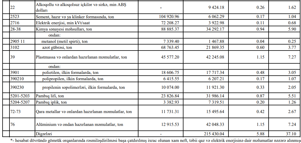 Azərbaycanın ən çox ixrac və idxal etdiyi mallar - YENİ SİYAHI