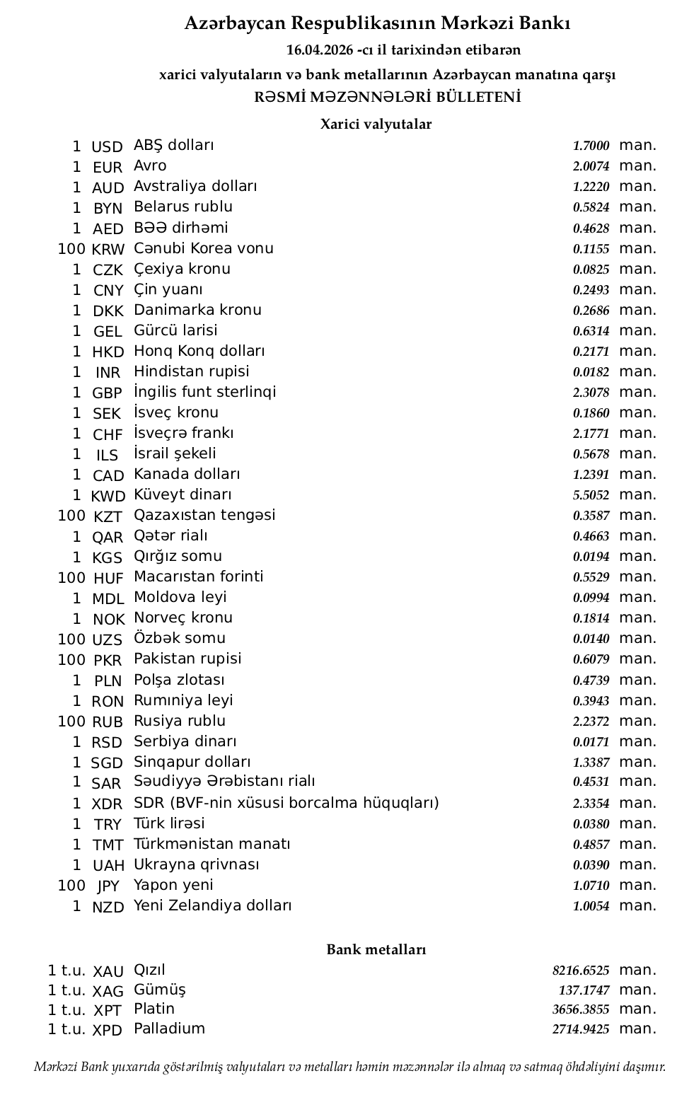 Dolların sabah üçün rəsmi məzənnəsi müəyyən olunub