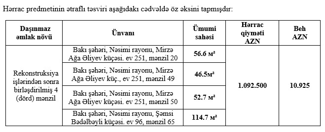 Xatırladaq ki, əmlak ilkin olaraq 2 milyon manata şatışa çıxarılmışdı.