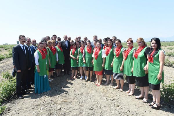 Sonra Prezident İlham Əliyev qızılgül sahələrinə baxıb.