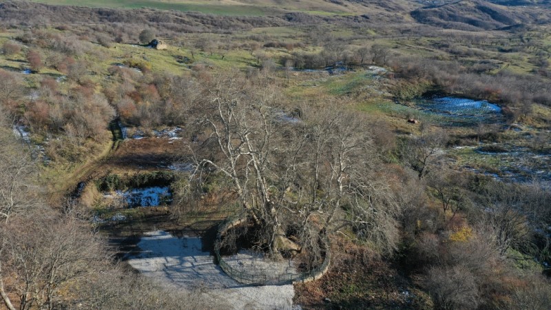 Kənddə 2500 ilə qədər yaşı olduğu təxmin edilən çinar nəinki Azərbaycanın, dünyanın ən yaşlı ağaclarından biri sayılır. Ağacın hündürlüyü 54 metr, gövdəsinin diametri 27 metrdir. Ağacın yaxınlığında onu su ilə təmin edən Tenqri bulağı yerləşir.
