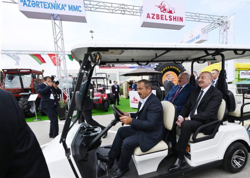 Sonra Azərbaycan və Belarus prezidentləri Bakı Ekspo Mərkəzinin açıq sahəsindəki stendlərlə tanış oldular.