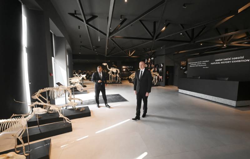 Kompleksin Təbiət tarixi sərgi zalı eksponatların zənginliyi ilə böyük maraq doğurur. Sərginin “Böyük pişiklər”, “Qobustan faunası”, “Azərbaycanın vəhşi heyvanlarının ayaq izləri”, “Azərbaycanın həşərat dünyası”, “Kiçik ölçülü heyvan skeletləri” guşələrində Azərbaycan və dünya faunasına aid vəhşi və ev heyvanlarının skeletləri, Azərbaycan təbiətinə aid olan həşəratlar, suda-quruda yaşayanlar və sürünənlər sərgilənir. Sərgidə nümayiş etdirilən bütün heyvan skeletləri və canlılar orijinal eksponatlardır. Bu eksponatlar bioetika normalarına uyğun olaraq hazırlanıb və bioloji ölümdən sonra Azərbaycan mütəxəssisləri tərəfindən onilliklər ərzində müxtəlif yerlərdən toplanmış heyvan skeletlərindən ibarətdir. Təbiət tarixi sərgisi Azərbaycanın faunasının zənginliyini, biomüxtəlifliyini nümayiş etdirir. Sərgidə Azərbaycan və dünya faunasına aid 98 heyvan skeleti, 870 müxtəlif növ qurudulmuş həşərat, xüsusi məhlulda nümayiş etdirilən 57 canlı, bir sıra sürünən və suda-quruda yaşayan heyvanlar, həmçinin paleontoloji eksponatlar nümayiş etdirilir. Uşaqların və məktəblilərin ətraf aləm haqqında maraqlarını artırmaq və onlarda heyvan skeletləri barədə təəssürat yaratmaq məqsədilə divarlarda müxtəlif heyvanların şəkilləri və illüstrasiyaları sərgilənir. Burada, həmçinin milli parklarımızda dövlət mühafizəsinə götürülmüş bir sıra heyvanların, o cümlədən bəbir, bezoar keçisi, ceyran, Xəzər suitisinin arealları haqqında məlumat verilir.
