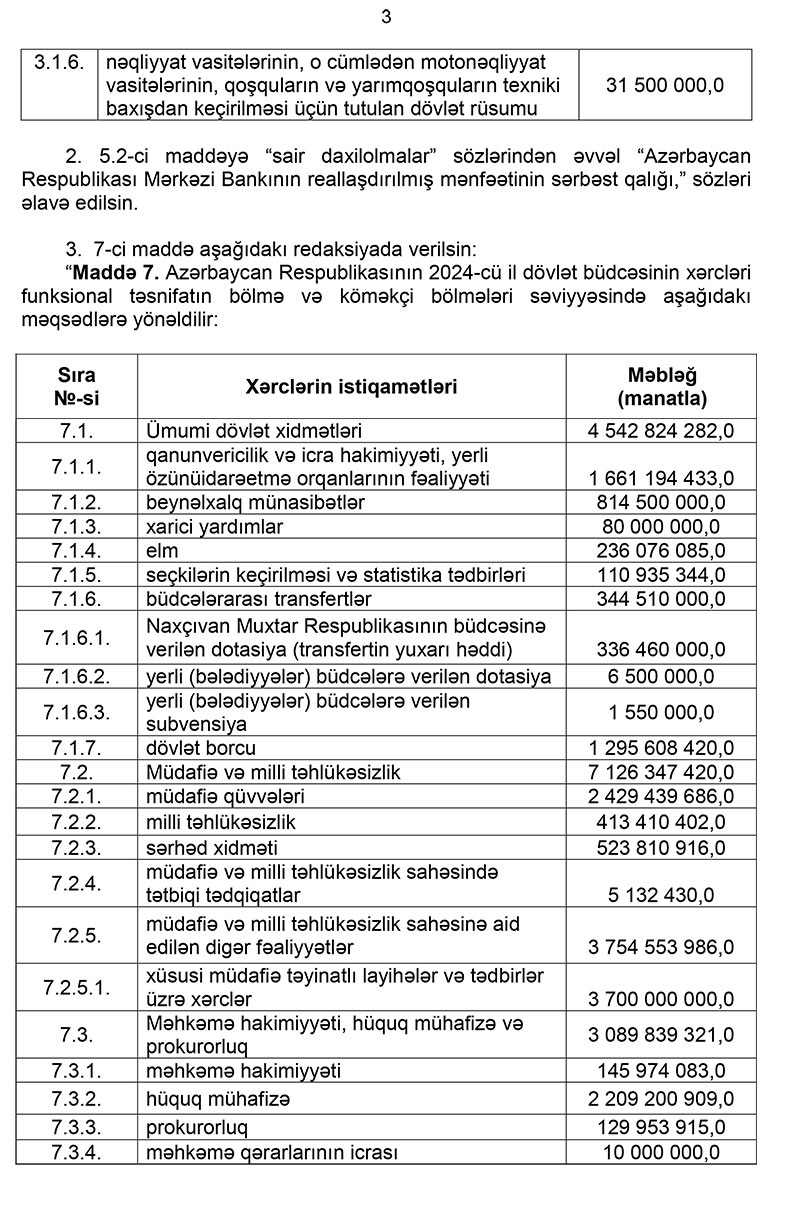 Bu, Prezident İlham Əliyevin təsdiqlədiyi “Dövlət sosial müdafiə fondunun 2024-cü il büdcəsi haqqında” Azərbaycan Respublikasının Qanununda dəyişiklik edilməsi barədə” qanunda əksini tapıb.