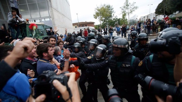 "Marja" xəbər verir ki, İspaniya təhlükəsizlik qüvvələri, seçki mərkəzlərinin qapılarını sındıraraq qutuları müsadirə edib. Basqınlara və yağışa baxmayaraq seçki mərkəzlərinin qarşısında gözləyən katalonları da dəyənək, rezin güllə və göz yaşı axıdan qaz ilə dağıtmağa çalışıb. Hadisələrdə, 2-si ağır 761 nəfər yaralanıb. Ağır yaralılardan birinin gözünə rezin güllə dəydiyi, digərinin müdaxilə zamanı ürəyi tutduğu öyrənilib.
