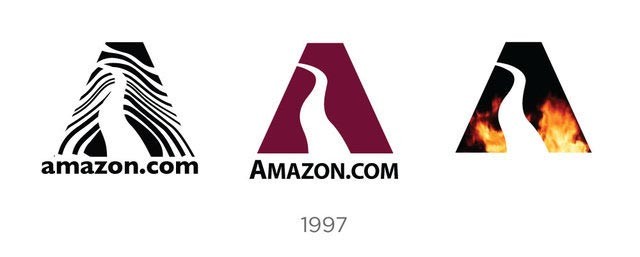 “Amazon.com” saytının ilk loqosu A hərfi içərisində çayın axınını göstərən bir dizayn idi. Maraqlıdır ki, bu gün hələ də “relentless.com”, ya da “awake.com” ünvanına daxil olduqda “Amazon.com” saytına yönəldilirsiniz.