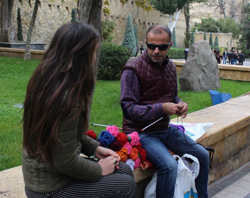 Müsahibənin bu yerində xanımla bəy gəlib əl işləri ilə maraqlanırlar, qiymətini öyrənirlər. Bu zaman xanım "5 manata bahadır, nə ehtiyac var ki” deyir. Müsahibimiz deyir ki, əslində bu cür insanları da qəbul edir: "Təbii gül üç gündən sonra solur və atırlar. Amma bu, əbədidir. Alan da sağ olsun, almayan da. Heç vaxt kimdənsə işlərimi almağını xahiş etmirəm, demirəm ki, ehtiyacım var, alın. Bəzən bəy öz xanımına almaq istəyib, amma xanım yavaşdan pıçıldayıb ki, lazım deyil. Bilirsiniz, o həyat yoldaşının puluna qıymır. Mən həmin bəyə deyirəm ki, qardaş, almaq məcbur deyil. Artıq əlinə alıb deyə, özünü almağa məcbur kimi hiss edib. Görmüşəm ki, bir tərəf razı deyil, mən almalarını istəməmişəm. İnsanları da başa düşürəm. Tutaq ki, günü 10 manata işləyən adam necə 5 manat verib alsın bunu. Mən öz əməyimi də itirmirəm. Bəzən deyirlər ki, 5 manata çox bahadır. Mən də deyirəm ki, gəl sən bunu gözüyumulu toxu, mən sənə 5 yox, 200 manat verərəm.