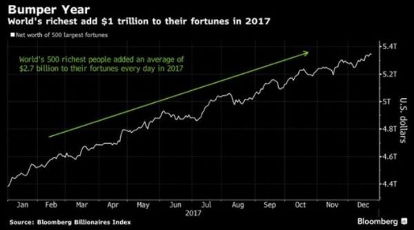 Dünyanın ən zəngin insanları sərvətlərini 2017-ci ildə 994 milyard dollar artıraraq daha da zəngin olublar.