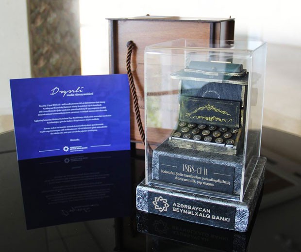 Hədiyyə, müasir kommunikasiyaların yaranması və inkişafı tarixini simvolizə edən, 150 il əvvəl Kristofer Şolts tərəfindən patentləşdirilmiş – dünyanın ilk çap maşınının modelidir.