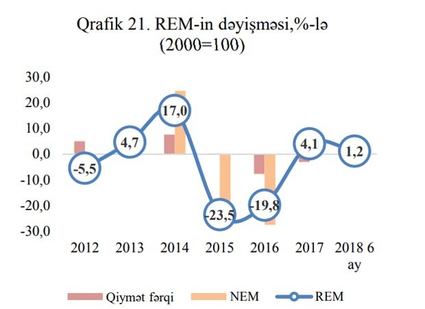 Nominal effektiv məzənnənin (NEM) 4.9% bahalaşması REM-ə artırıcı, tərəfdaş ölkələrlə inflyasiya fərqləri isə azaldıcı təsir etmişdir.