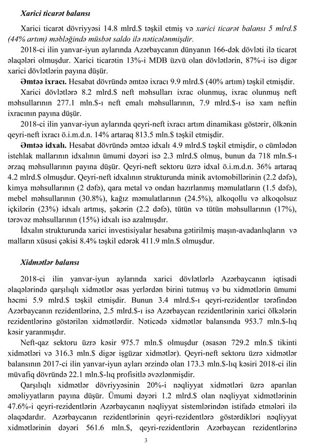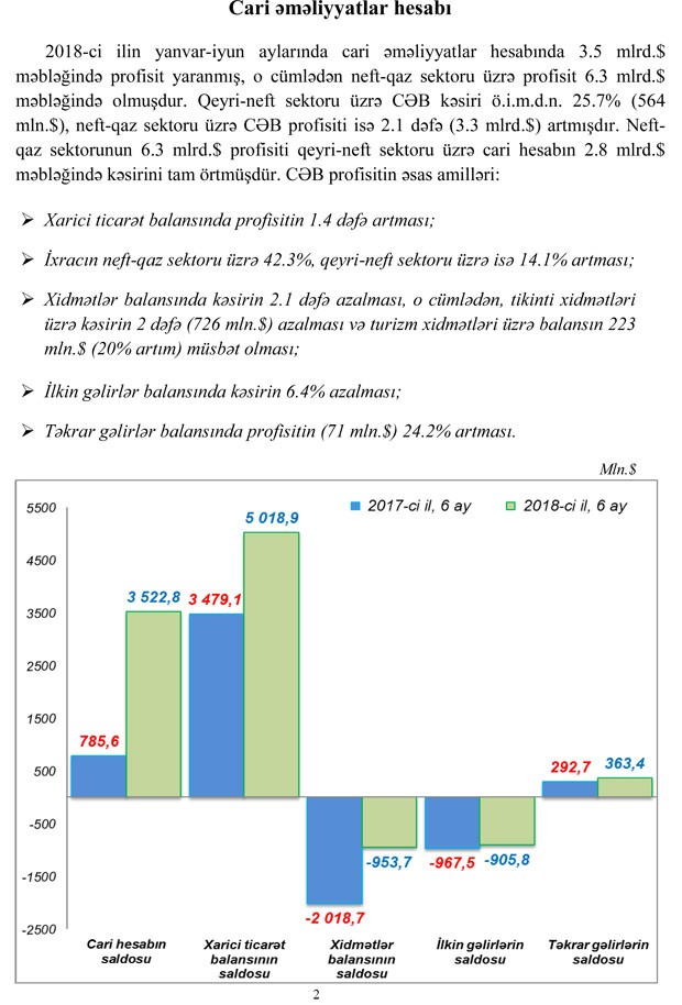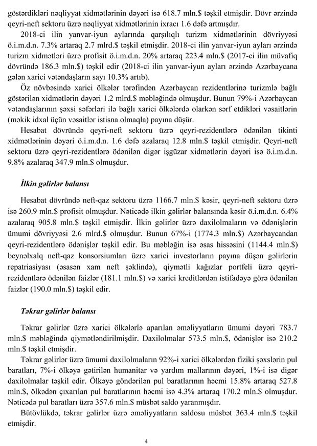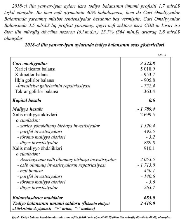 Mərkəzi Bank 2018-ci ilin yanvar-iyun ayları üçün Azərbaycan Respublikasının Tədiyyə balansını dərc edib.