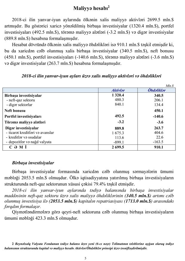 2018-in 6 ayı üçün TƏDİYYƏ BALANSI