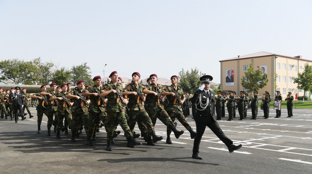 Hərbi hissənin şəxsi heyəti təntənəli marşla tribunanın qarşısından keçib.