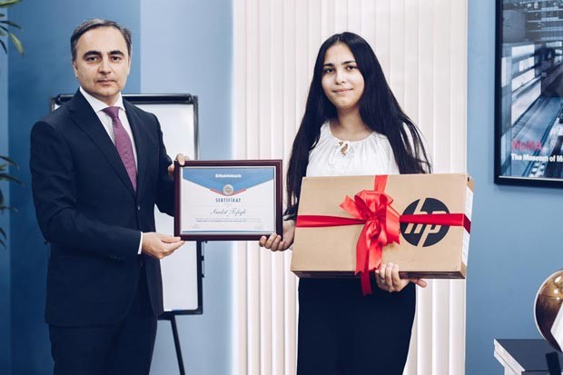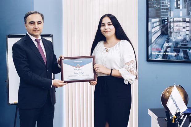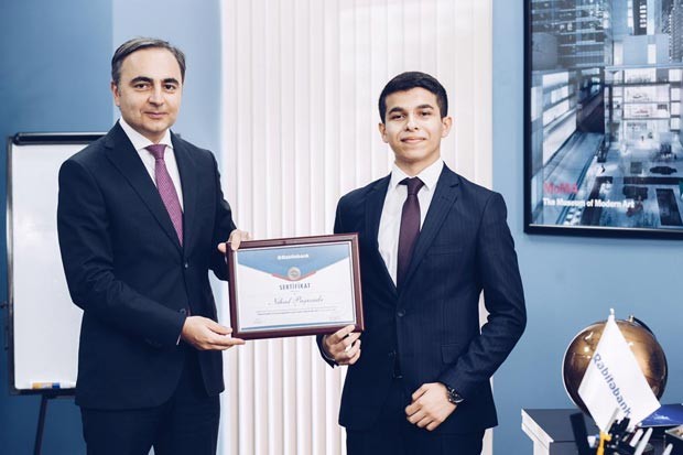Daha sonra Rabitəbankın Baş ofisində baş tutan mükafatlandırma zamanı esse müsabiqəsinin qalibləri Səadət Tofiqli və Nihad Paşazadəyə Rabitəbank adından hər iki tələbənin şəxsi istifadələri üçün noutbuk və təhsil aldıqları 4 il ərzində hər ay Rabitəbank tərəfindən təqdim olunacaq 100 Azn məbləğində təqaüd barədə sertifikat təqdim olunmuşdur.