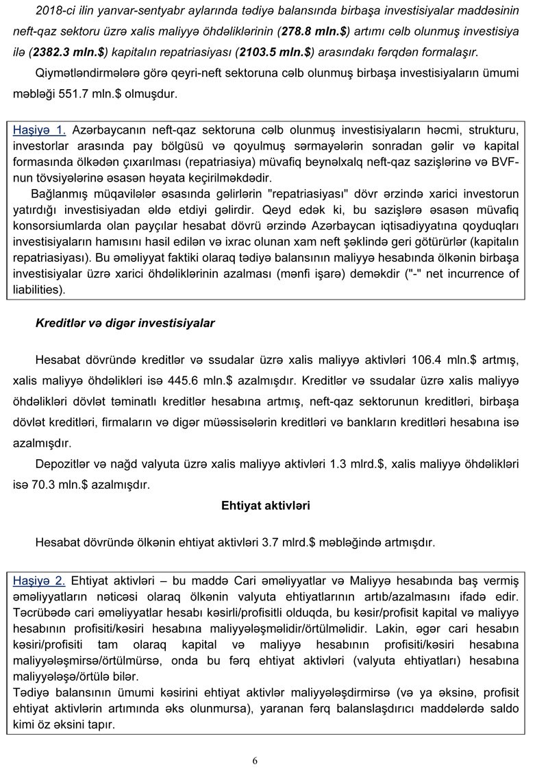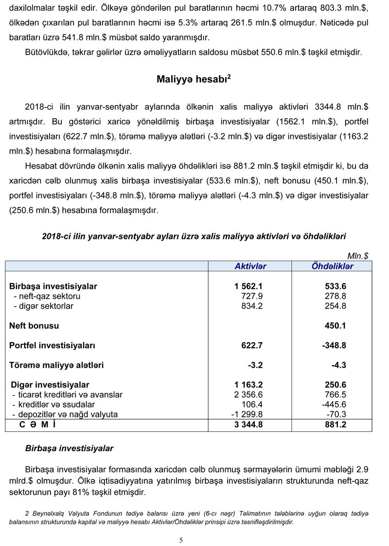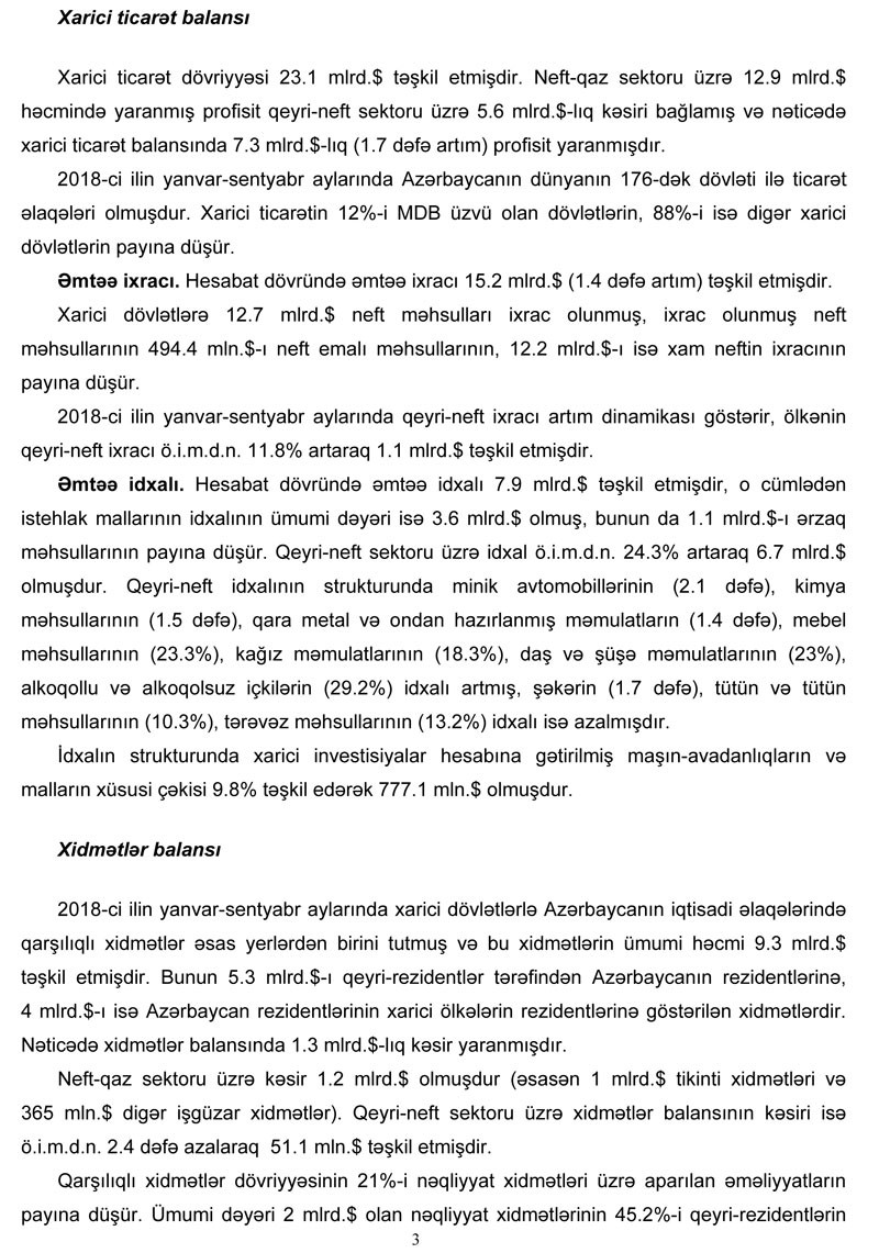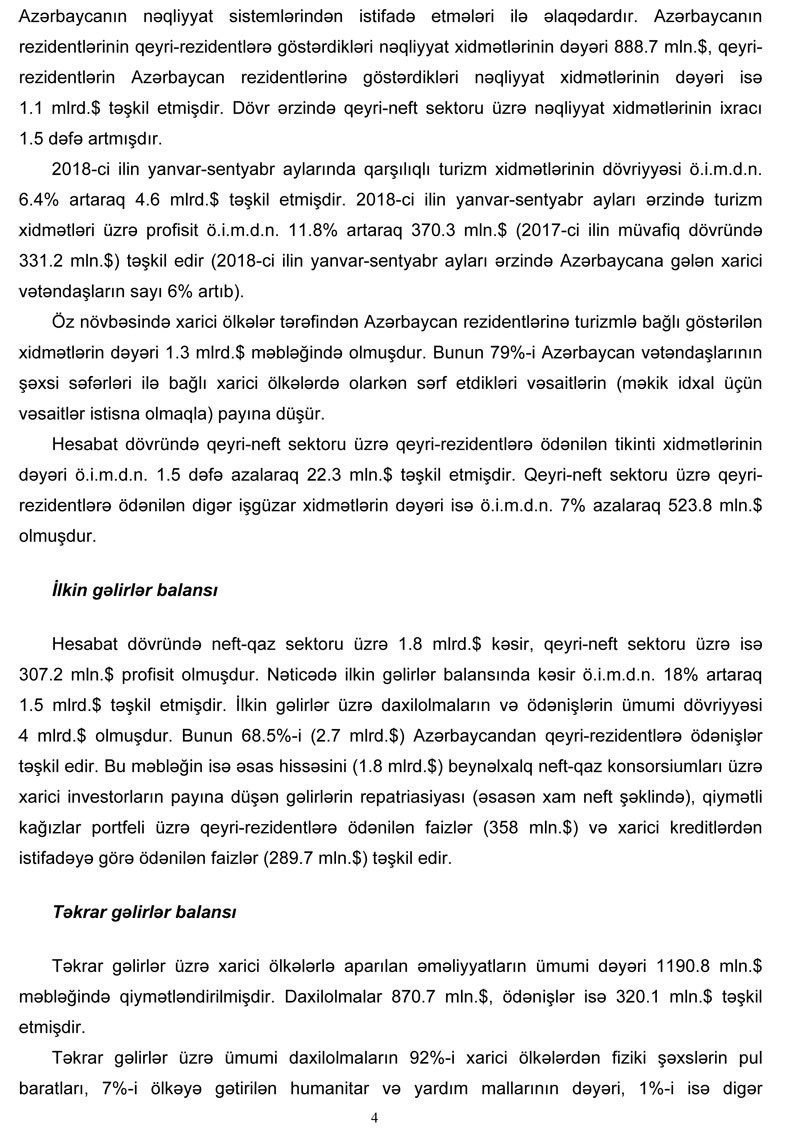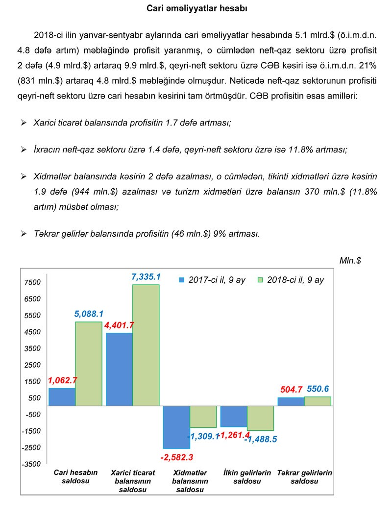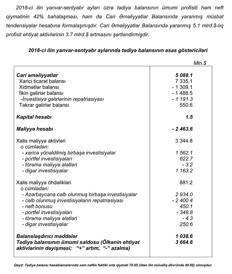 2018-ci ilin yanvar-sentyabr ayları üçün Azәrbaycan Respublikasının Tədiyyə balansı