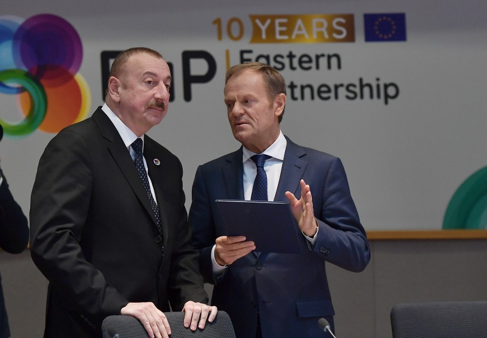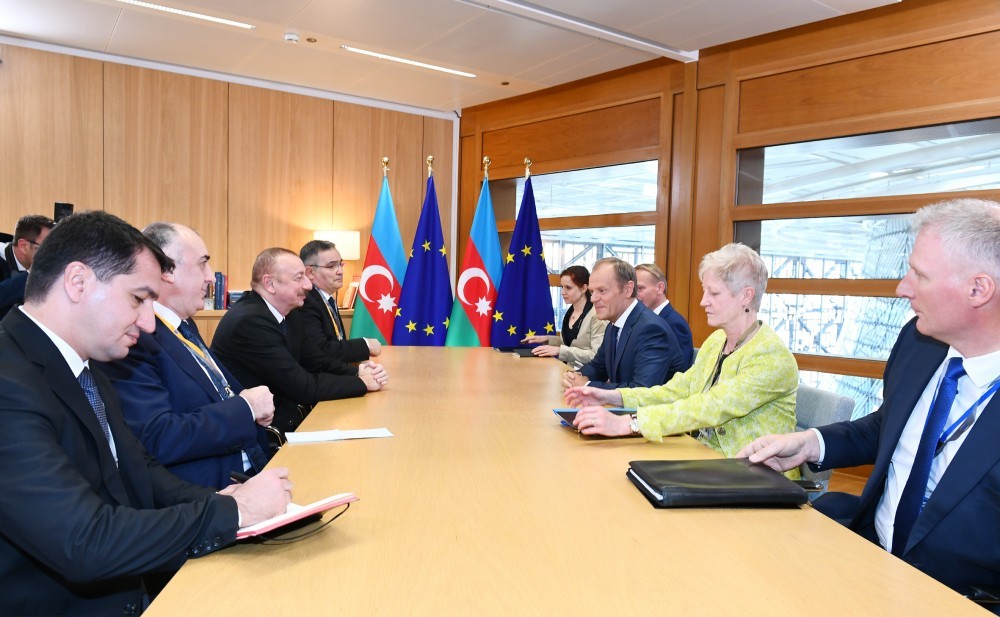 Azərbaycan Respublikasının Prezidenti İlham Əliyev mayın 13-də Brüsseldə Avropa İttifaqı Şurasının prezidenti Donald Tusk ilə görüşüb.