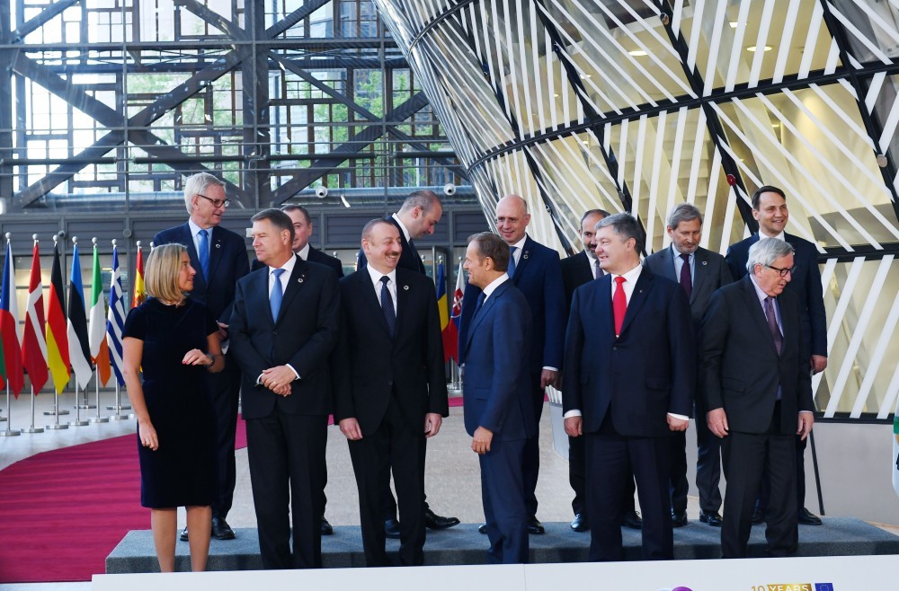 Sonra Şərq Tərəfdaşlığı ölkələrinin dövlət və hökumət başçıları rəsmi foto çəkdiriblər.