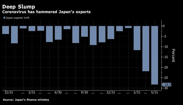 Yaponiya Maliyyə Nazirliyi tərəfindən açıqlanan məlumatlara görə, Yaponiyanın cəmi ixracı May ayında ötən ilin May ayı ilə müqayisədə 28.3% azalıb.