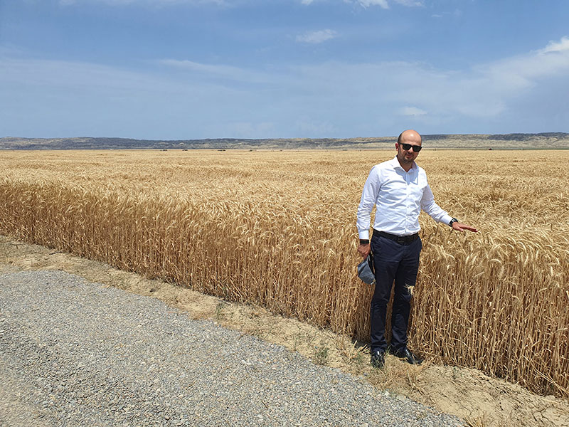 Eyni zamanda biz, cənab Prezidentə məlumat verdik ki, Tovuz ərazisində bu il ilk dəfə böyük sahələrdən hər hektardan orta hesabla 7,0 ton, hətta ayrı-ayrı sahələrin hər hektarından 8,5-8,6 ton yüksək keyfiyyətli buğda istehsalına nail olmuşuq. Cənab Prezident həyata keçirilən işləri yüksək qiymətləndirərək, istifadə etdiyimiz təcrübəni bu sahədə çalışan digər fermerlər ilə bölüşməyimizi tövsiyə etdi. Bu tapşırıqdan irəli gələrək qısa müddətdə şirkətin Hacıqabul rayonunda yerləşən ofis binasında zəruri işləri yerinə yetirməklə, 28 sentyabr 2020-ci il tarixindən fermerlər, aqronomlar, toxumçuluqla məşğul olanlar və digər maraq göstərənlər üçün ödənişsiz təlimlərin təşkilinə başlayacayıq.
