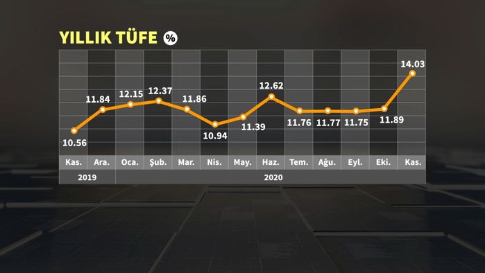 Türkiyə Statistika Komitəsinin açıqladığı məlumatlara görə, istehlakçı qiymətləri indeksi (inflyasiya) Noyabrda ötən ilin eyni dövrü ilə müqayisədə 14,03% artım qeyd edib. Aylıq müqayisədə artım isə 2,3% olub.