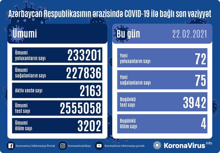 Qeyd edək ki, 21 Fevral 2021-ci il tarixində 156 yoluxma faktı qeydə alındığı açıqlanmışdı.