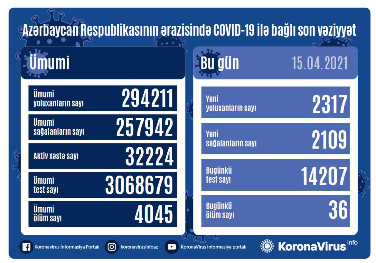 14 Aprel 2021-ci il tarixində 2293 yoluxma faktı qeydə alındığı açıqlanmışdı.