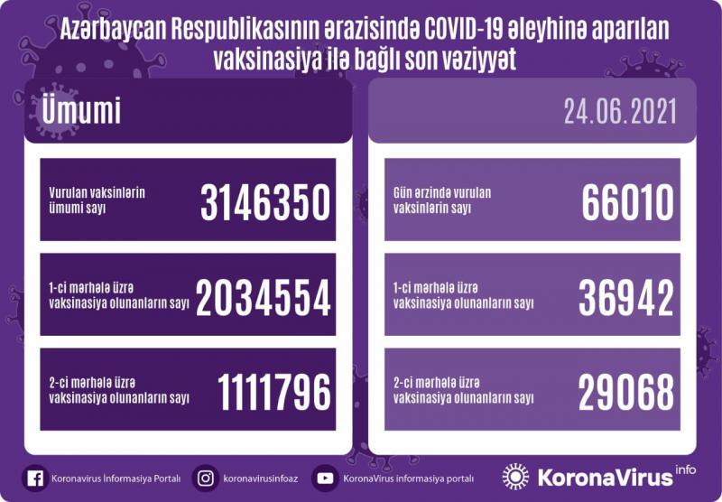 Azərbaycanda bu gün 66 min 10 nəfər vaksinasiya olunub.