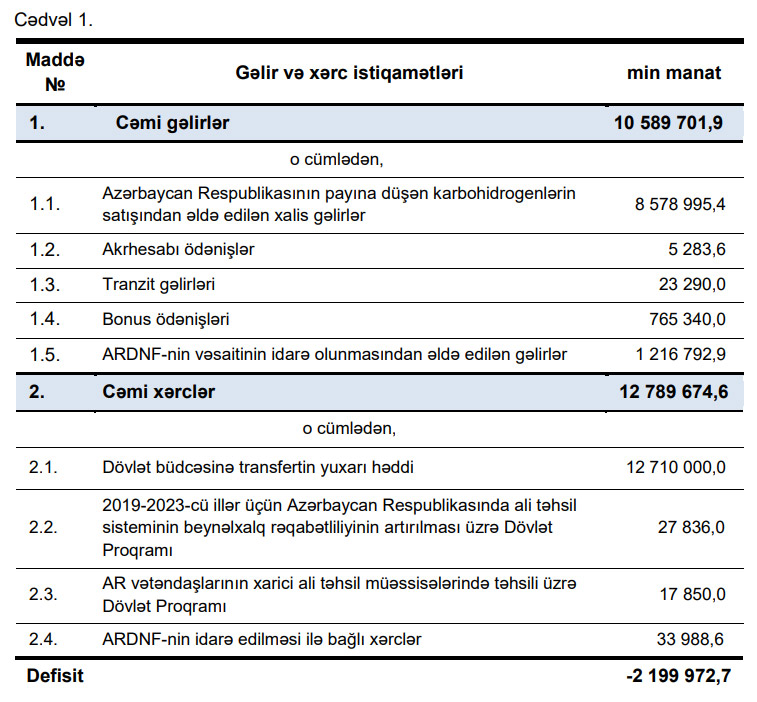 2020-ci ildə Dövlət Neft Fondunun büdcəsinin 2,2 milyard manat kəsirlə formalaşacağı nəzərdə tutulur.
