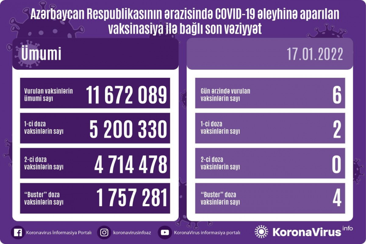 Xatırladaq ki, 16 Yanvar 2022-ci il tarixində 808 yoluxma faktı və 11 ölüm qeydə alındığı açıqlanmışdı.13 Dekabr 2020-ci il tarixində açıqlanmış fakt (4451) bugünədək qeydə alınmış ən yüksək günlük yoluxma sayı idi.