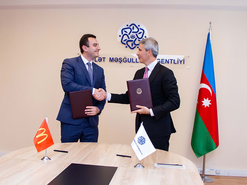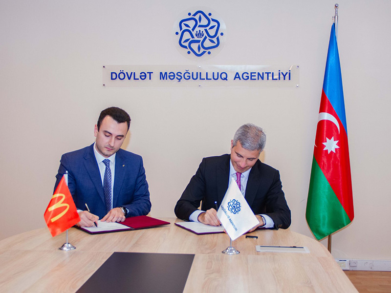 Sənədi Dövlət Məşğulluq Agentliyinin İdarə heyətinin sədri Mustafa Abbasbəyli və “McDonald’s Azərbaycan” QSC -nin direktoru Oskar Boqopolskiy imzalayıb.