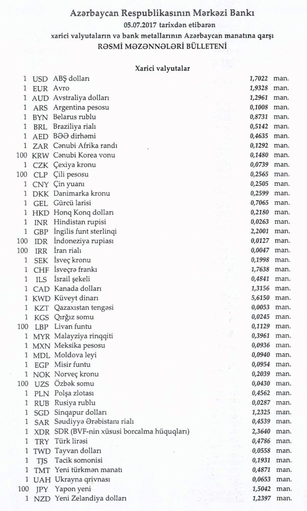 AZN məzənnələri açıqlandı