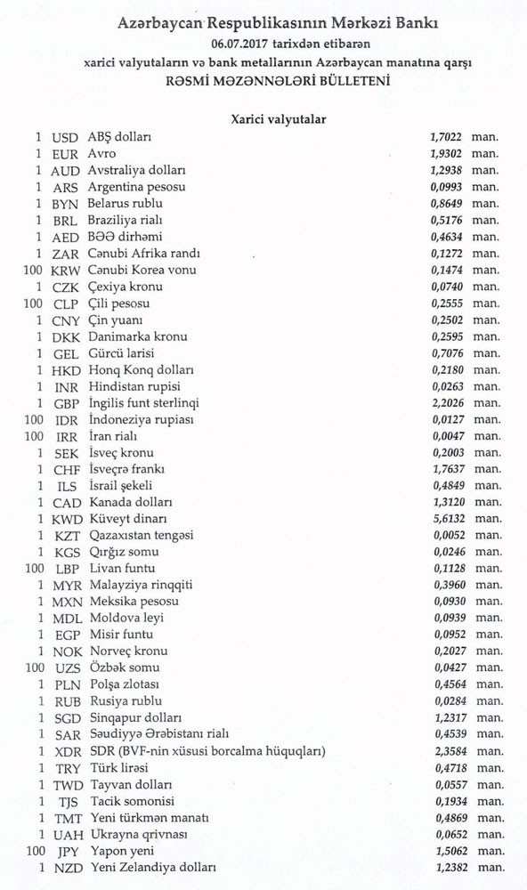 AZN məzənnələri açıqlandı - GÖZLƏR MƏRKƏZİ BANKDA