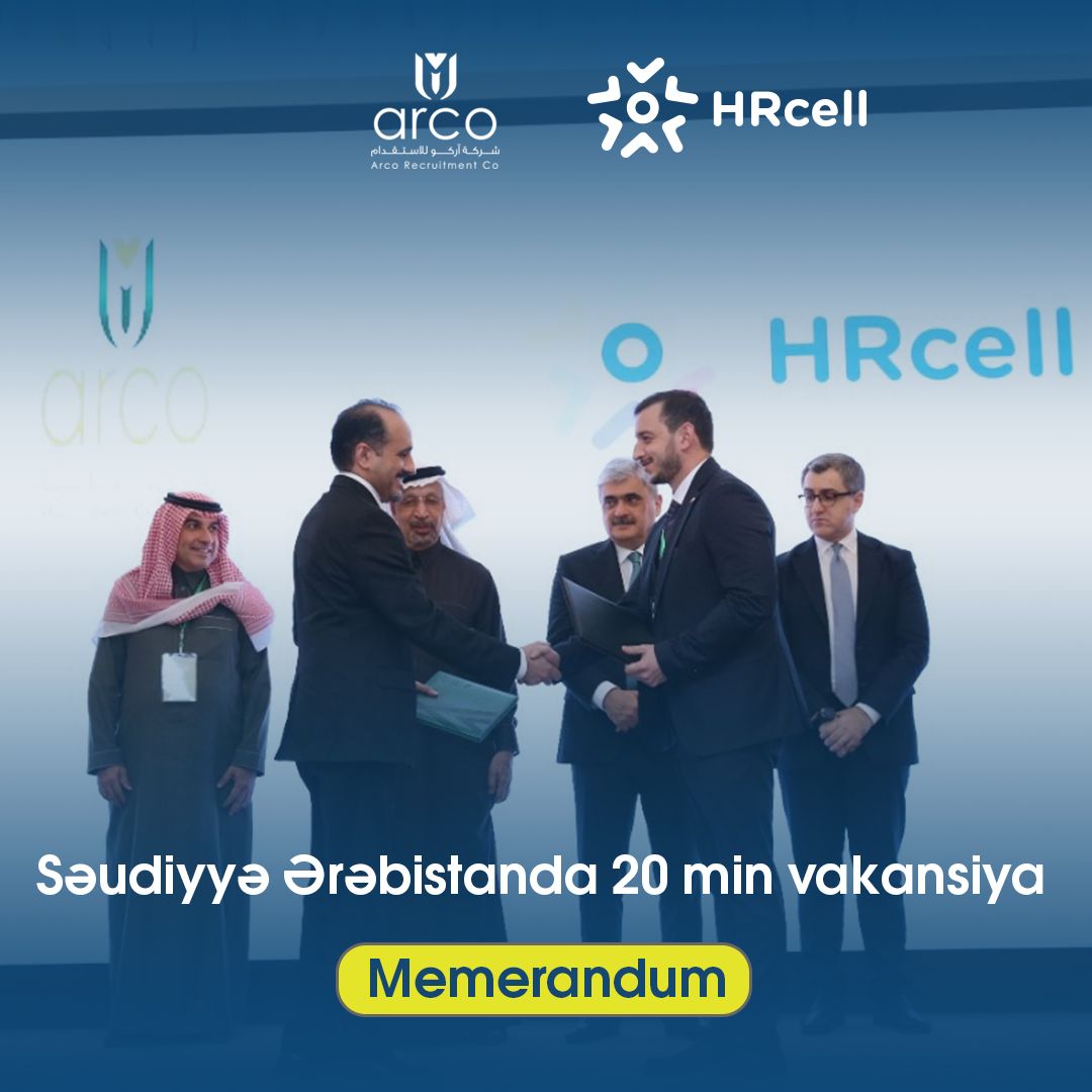 "Qürurla bildirmək istərdim ki, Azərbaycan Respublikası ilə Səudiyyə Ərəbistanı Krallığı arasında əməkdaşlıq çərçivəsində HRcell komandası olaraq Səudiyyə Ərəbistan Krallığının ən böyük Recruitment şirkətlərindən biri olan "ARCO Human Resources Co." ilə əməkdaşlıq memorandumu imzalamışıq. Yaxın bir neçə il ərzində biz Səudiyyə Ərəbistanı Krallığında 20 mindən çox azərbaycanlını işlə təmin edəcəyik",- Ağahüseyn Əliyev deyib.