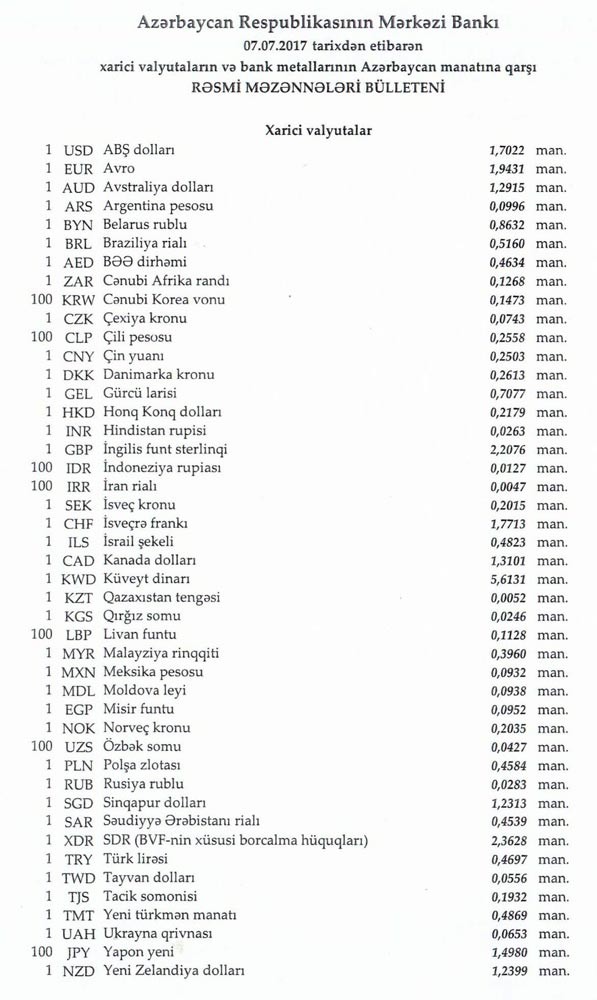 AZN məzənnələri açıqlandı